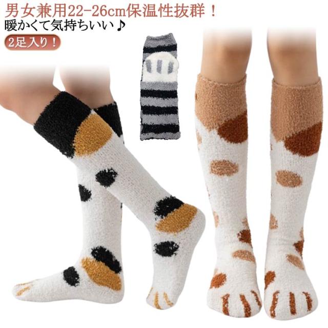 猫柄 あったか靴下 レディース 暖かい 防寒 あったかソックス かわいい あったか靴下 猫の爪 暖かい靴下 可愛い 厚手 裏起毛 温活 温かい靴下 あったかくつした モコモコ靴下 ハイソックス 2足入 ソックス 靴下 あったかい 冷え取り 冬 ルームソックス ルーズソックス