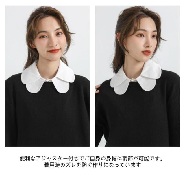| いつものコーデや手持ち服の可愛さと華やかをUPさせる付け襟 程よい甘さを演出する付け襟、可愛い感じになります、柔らかい生地で女性らしさアップ ロンT、トレーナー、ニット、ワンピースの下に着てレイヤードスタイルが簡単に完成! 便利なアジャスター付きでご自身の身幅に調節が可能です。着用時のズレを防ぐ作りになっています コーディネートの幅が広がっておしゃれが楽しくなるイチオシアイテム | |