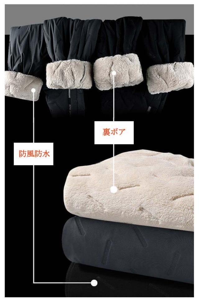 | ジョガーとストレートの2タイプ選べる! 寒い季節の体温調整に、1着あると重宝します。 もこもことしたボア素材を使用したため防寒性と保温性に優れます。 特に寒さを感じやすい下半身が驚くほど暖かく快適になります。 少々の雨や雪の日でも着用できるように表面には撥水加工をプラス。 | |