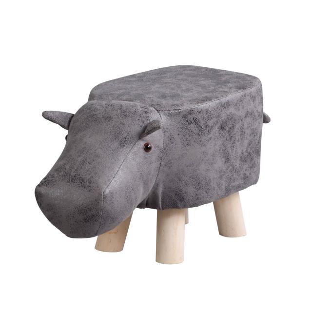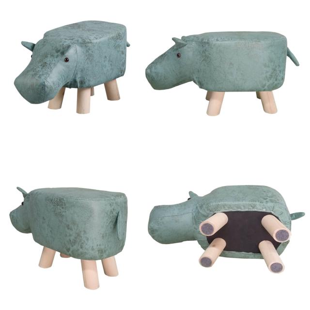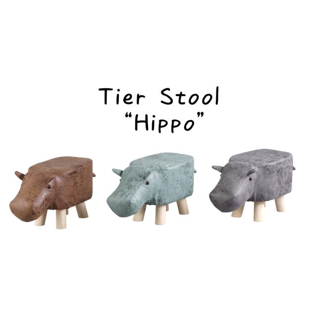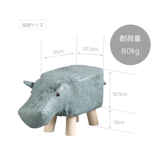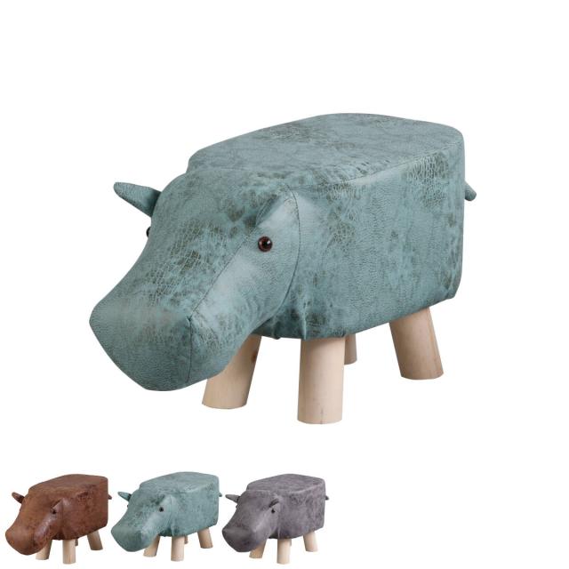 アニマルスツール カバ 座面高26.5cm ティーア・スツール・ヒッポ ( 椅子 チェア かば アニマル 動物 ロー レザー調 木製脚 キッズ リビング 北欧 ナチュラル おしゃれ かわいい コンパクト クッション )