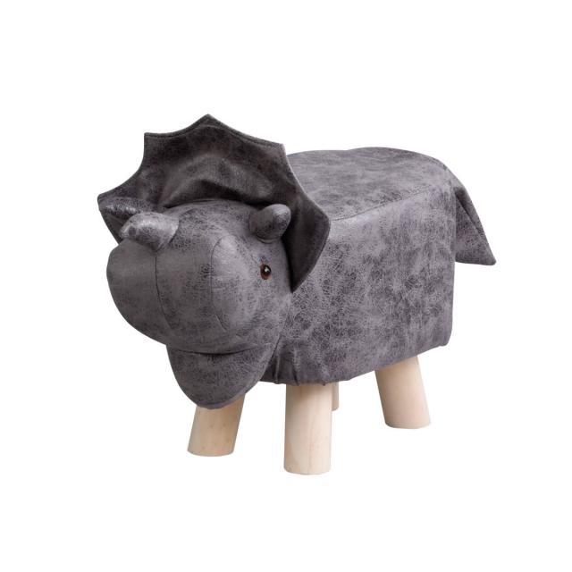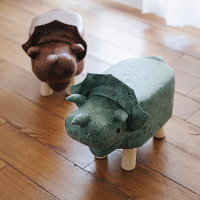 合皮の模様とぬいぐるみのような可愛らしい表情が魅力的な、トリケラトプスがモチーフのスツールです。木製の脚もポイント。様々な場所で幅広く使用でき、置くだけで温かみのある可愛らしい雰囲気を演出してくれます。