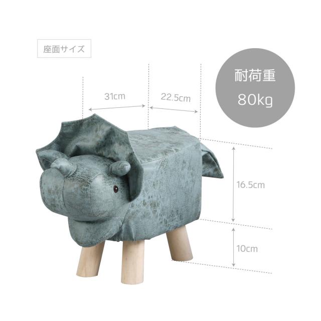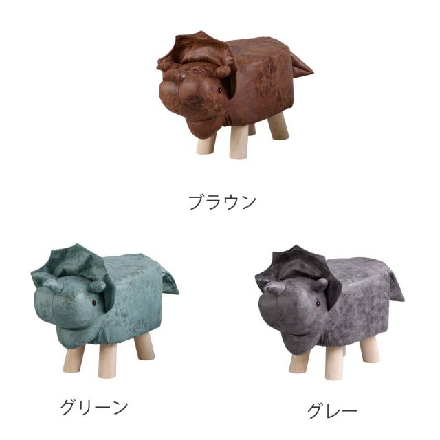 アニマルスツール 恐竜 座面高26.5cm ティーア・スツール・トリケラトプス ( 椅子 チェア ダイナソー ロー レザー調 木製脚 キッズ リビング 北欧 ナチュラル おしゃれ かわいい コンパクト クッション )
