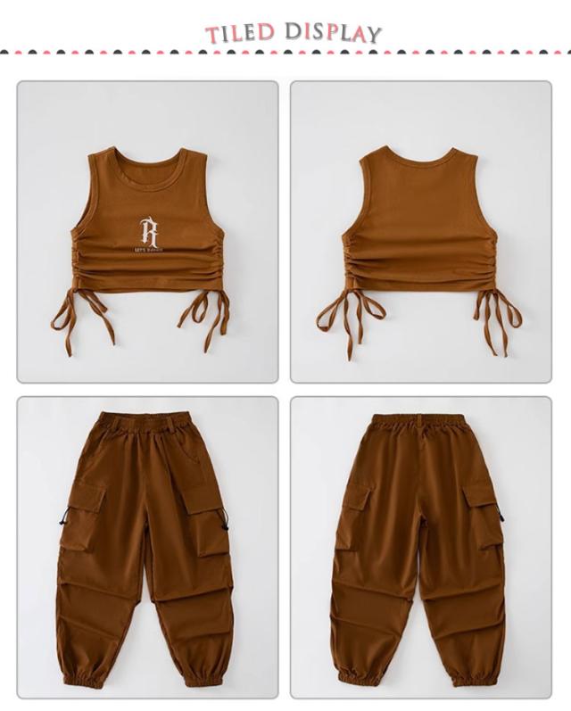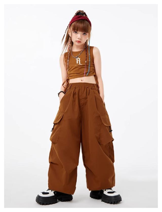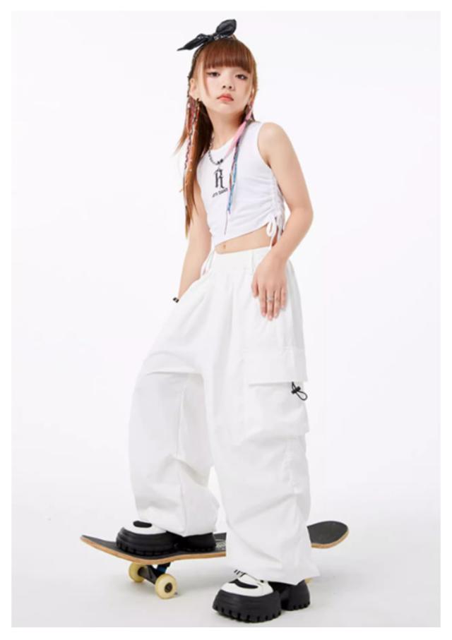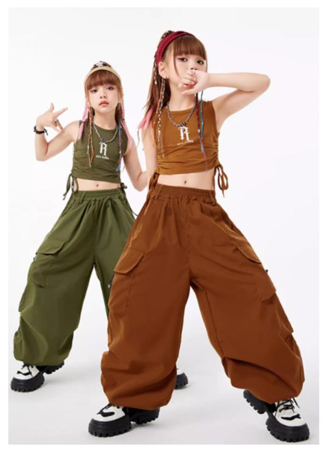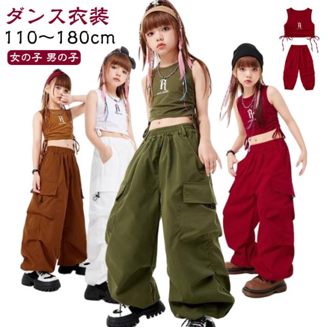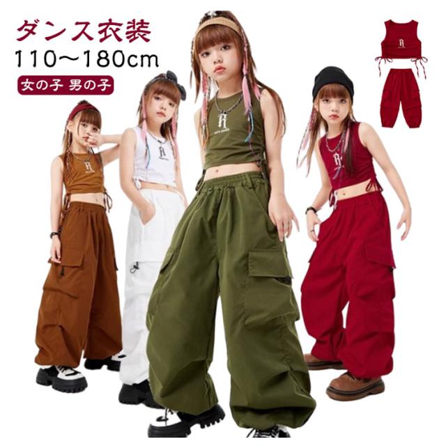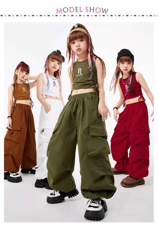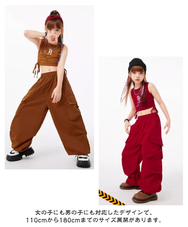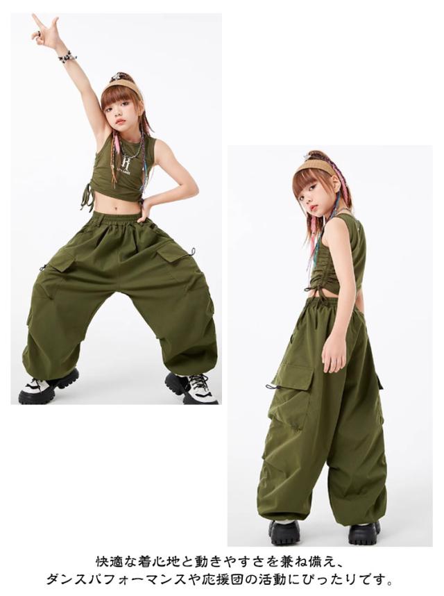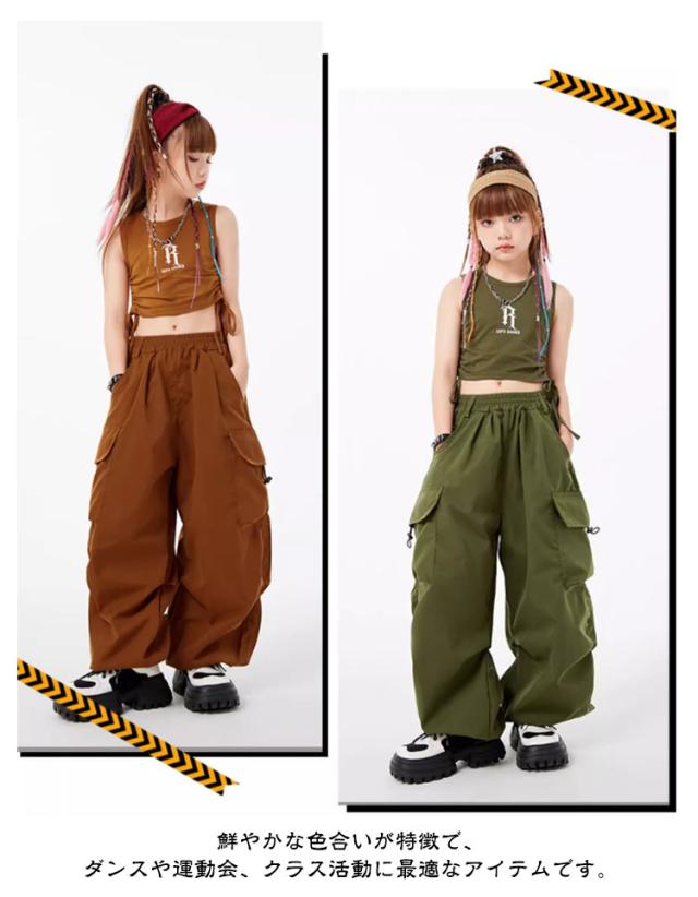 子供服 ダンス衣装 カーゴパンツ ダンスパンツ タンクトップ 女の子 男の子 ボトムス トップス 長ズボン ロングパンツ キッズダンス カーゴパンツ ドラムショー 公演服 ジャズダンス 運動会 応援団 クラス活動 チアガール 練習着 110-180cm