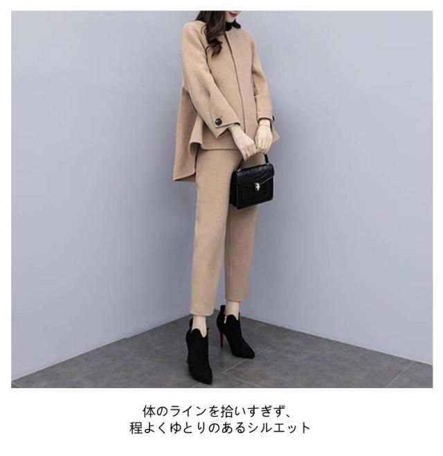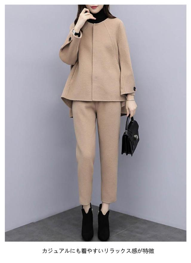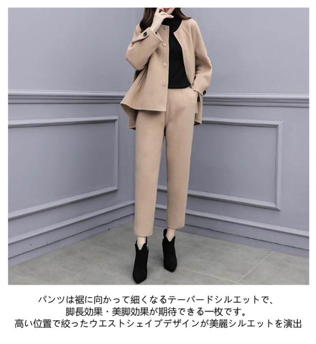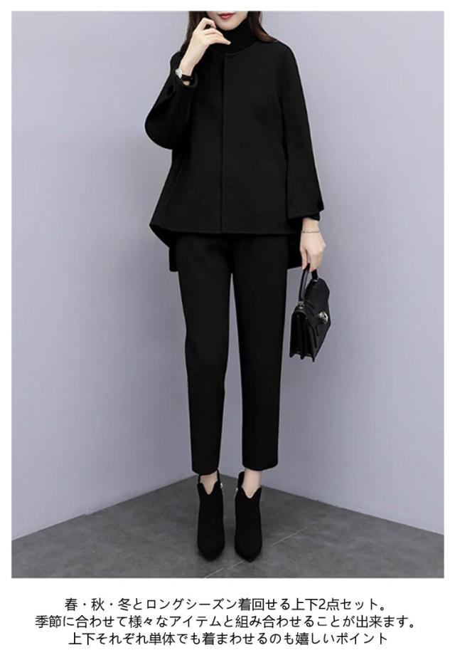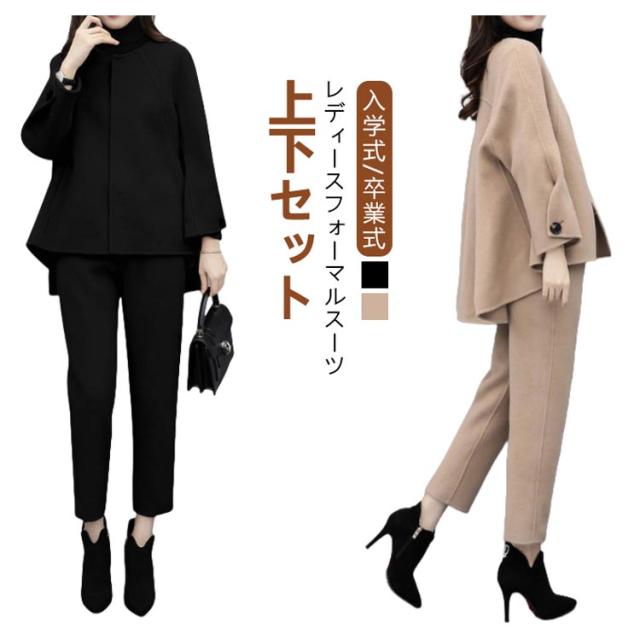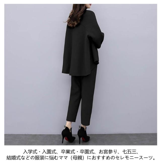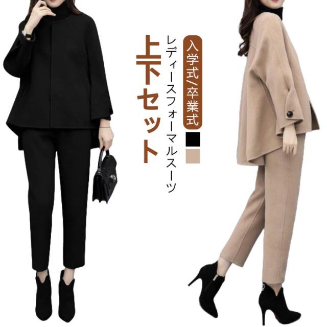 セットアップ 卒業式 スーツ 入学式 レディース フォーマルスーツ 母 卒園式 セレモニースーツ パンツスーツ ママ 上下セット ワイドパンツ 九分丈 結婚式 写真撮影 卒園式 入園式 テーラード ジャケット お出かけ 七五三 黒 ブラック キャメル