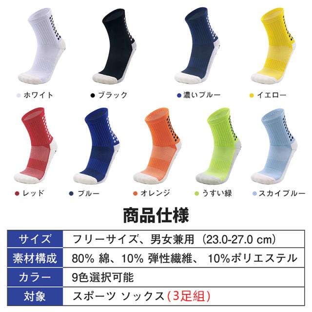 脚底一面の滑り止め 少し長めのくるぶし丈【3足組】ズレにくい 9色 靴下 メンズ 滑り止め 足底 滑らない 靴下 通気 抗菌 防臭 伸縮性 サッカー