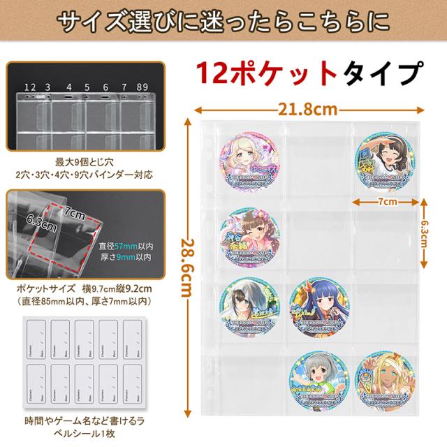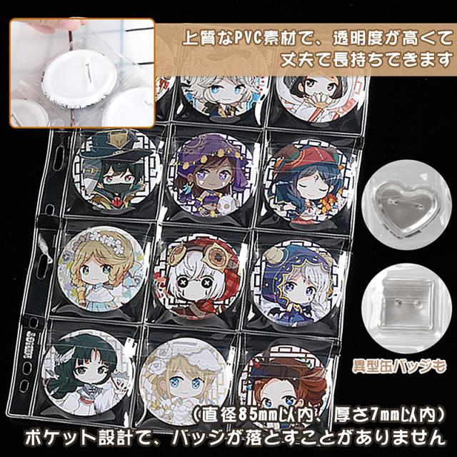 缶バッジ 収納 収納ケース 収納ファイル 75mm 缶バッジカバー リフィル 缶バッジ専用 30/60/90/120ポケット 75mm対応 高透明度 丈夫 ラベルシール付き