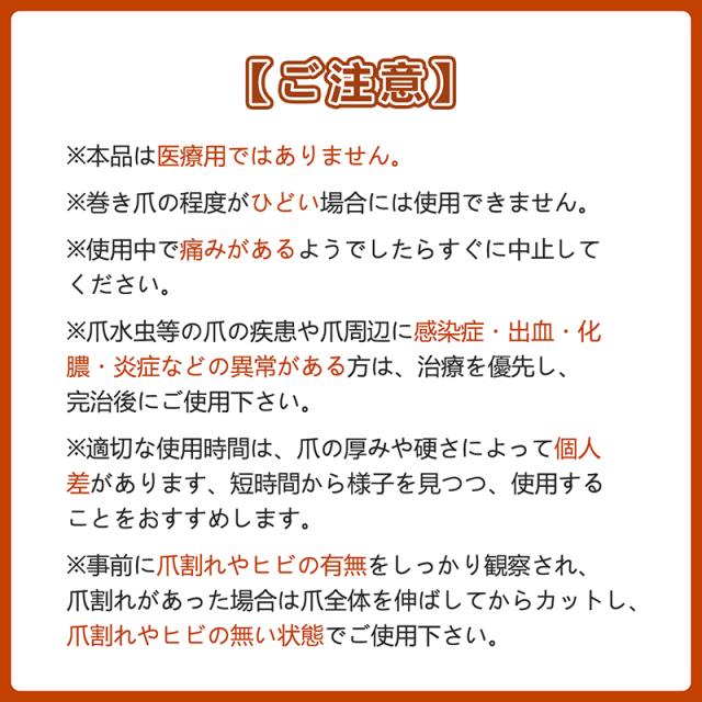 ※爪水虫等の爪の疾患や爪周辺に出血・化膿・炎症などの異常がある方は、治療を優先し、完治後にご使用下さい。