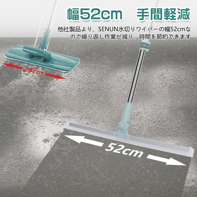 【幅52cm・手間軽減】他社製品より、SENUN水切りワイパーの幅52cmなので繰り返し作業が減り、時間を節約できます。