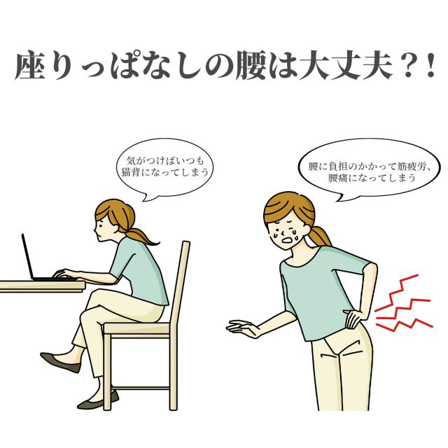 ランバーサポートで正しい着座姿勢を維持、腰への負担がかからない