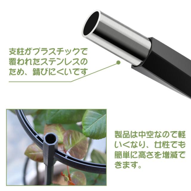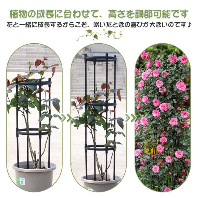 | 【幅広く対応】 | 商品のサイズは直径25cm、高さ180cmで、内径26cm以上の鉢に対応します。鉢植えの薔薇だけではなく、アイビー、クレマチス、ジャスミン、オデュッセイアなどのつる花にも最適です。※使用の際は土中に20cmほど埋め込んで下さい。 |