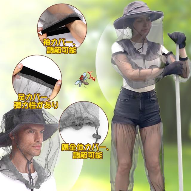 【メッシュ素材】通気性が良いポリエステルメッシュ素材で作られており、風通し、視界が良いメッシュタイプ刺されたくない顔、足、腕をカバーで虫の侵入を防ぎます。