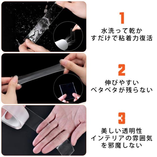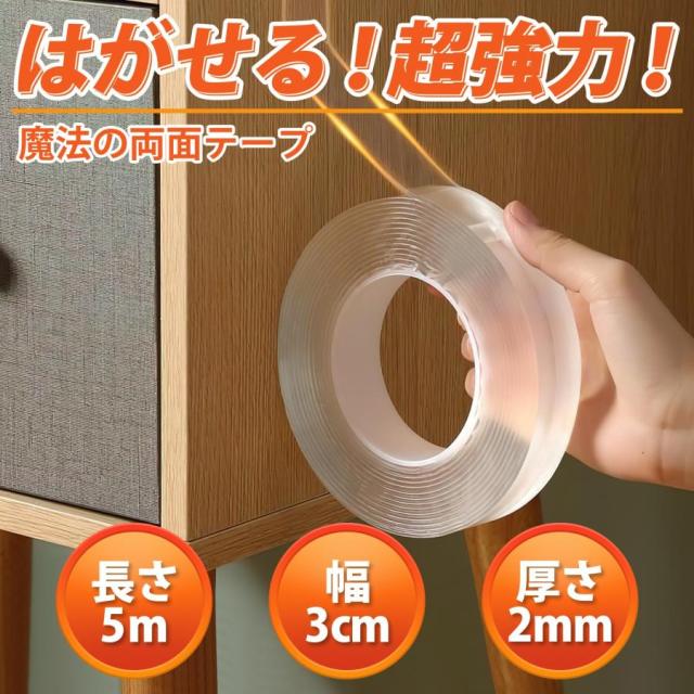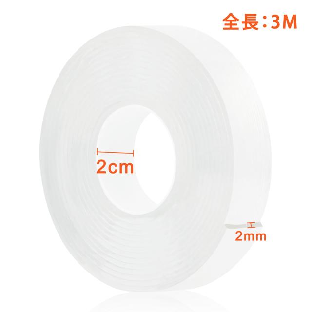 両面テープ 超強力 3m 厚み2mm 透明 車 はがせる 厚手 幅広 魔法テープ 粘着テープ 貼ってはがせる 極厚 固定 透明 繰り返し 防水 クリア DIY 防災 地震対策