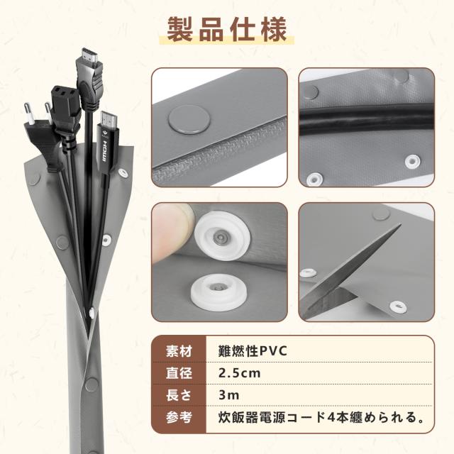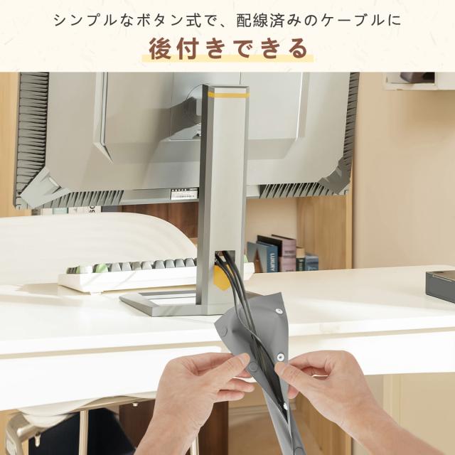 ケーブル配線をすっきりとまとめるケーブルスリーブです。汚れた際は簡単に外して洗浄できるので、いつでも清潔な状態を保てます。配線の見た目が綺麗になり、部屋の印象もすっきりとします。長さは自由にカットで、様々シーンに適用です。取り付け方も簡単で、 後付け可能ので、ケーブル設置のやり直す必要がない。お手入れが簡単なので、長期間ご利用いただけます。