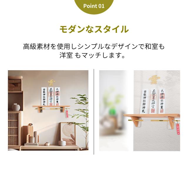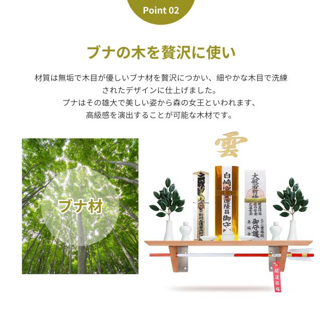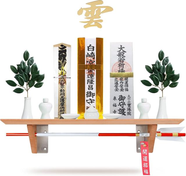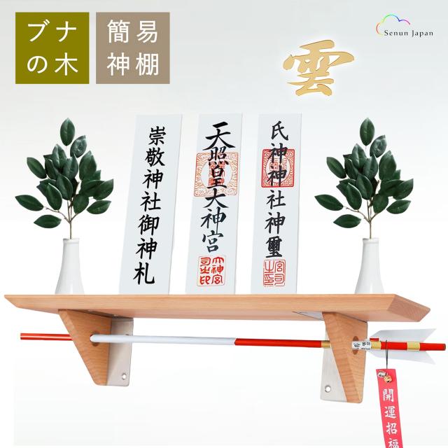 神棚 おしゃれ モダン 壁掛け 神具 雲 モダン 御札 破魔矢 破魔矢置き ブナの木 お札立て 神札ホルダー 簡易神棚 賃貸 天然木 高品質 北欧風 棚板 モダン神棚