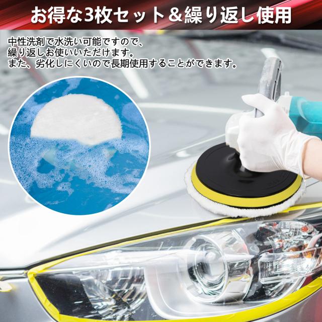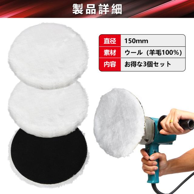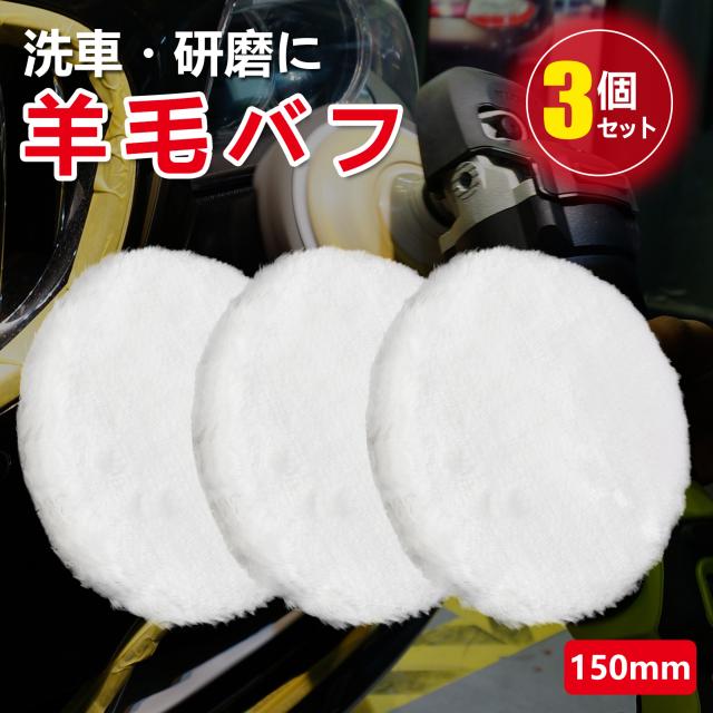 羊毛バフ ウールバフ 3個セット 150mm ロングウールバフ 天然羊毛 柔らかい 洗車 車磨き 研磨 艶出し キズ消し 洗車用品 車用グッズ 送料無料