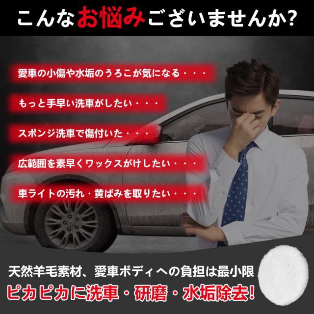 ピカピカに洗車・研磨・水垢除去!天然羊毛素材、愛車ボディへの負担は最小限!