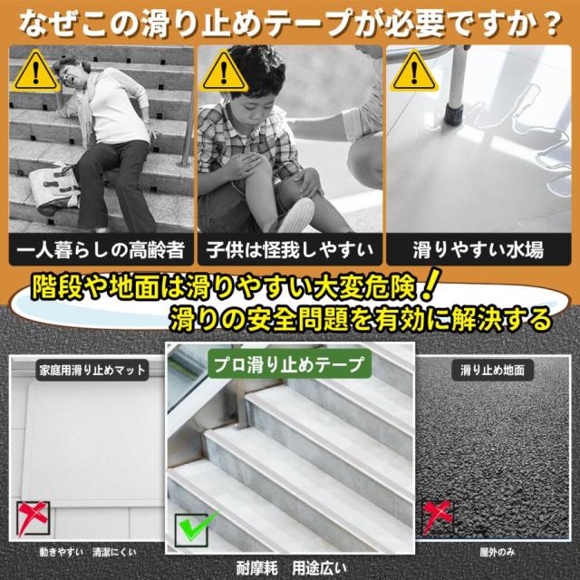 【貼るだけ簡単施工】必要な長さに切って貼るだけで簡単に転倒防止ができるテープです。 低コストで足元の安全・安心を確保することが出来ます。