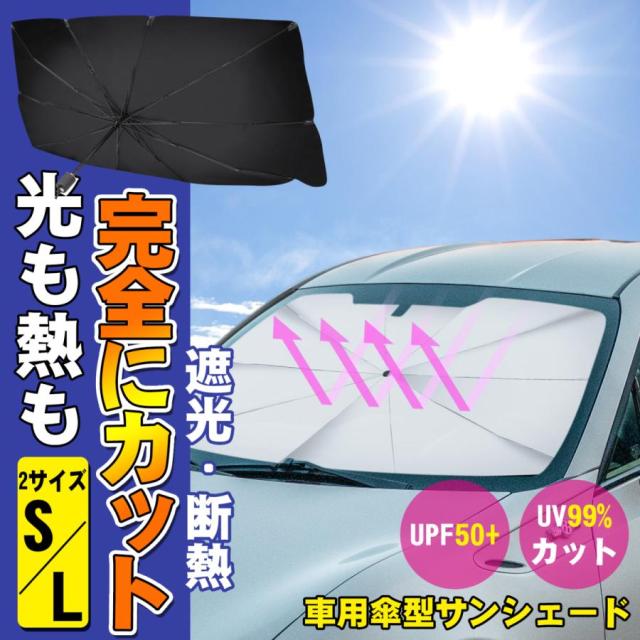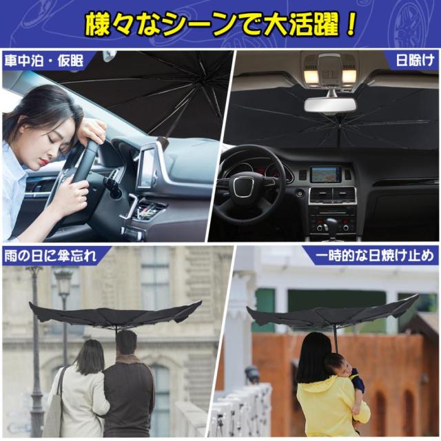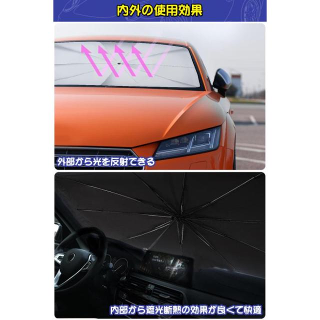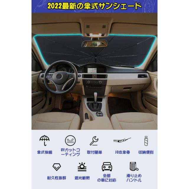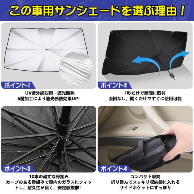 サンシェード 車用 折り畳み式 傘型 日除け フロントガラス フロントシェード 車中泊 カー シェード ワンタッチ UVカット 遮光 断熱 10本骨