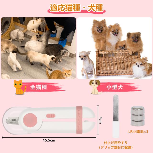 犬 猫 爪切り ペット用爪切り LEDライト 猫用ネイルトリマー 犬の爪切り グラインダー 簡単操作 初心者にも簡単 小型 コンパクト 持ち運びやすい ステンレス製