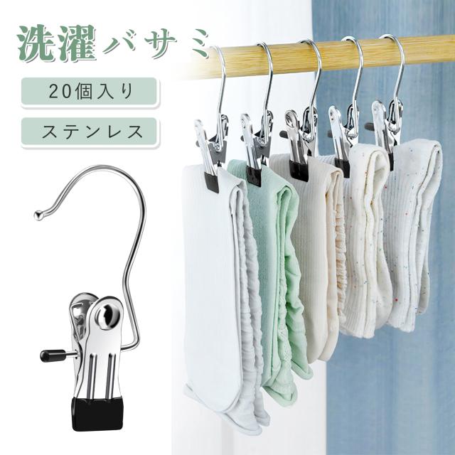 洗濯バサミ ステンレス 20個 小物クリップ モノクリップ 大きい 強力 滑り止め 防風クリップ おしゃれ 帽子収納 帽子ハンガー キャップラック 洗濯ばさみ