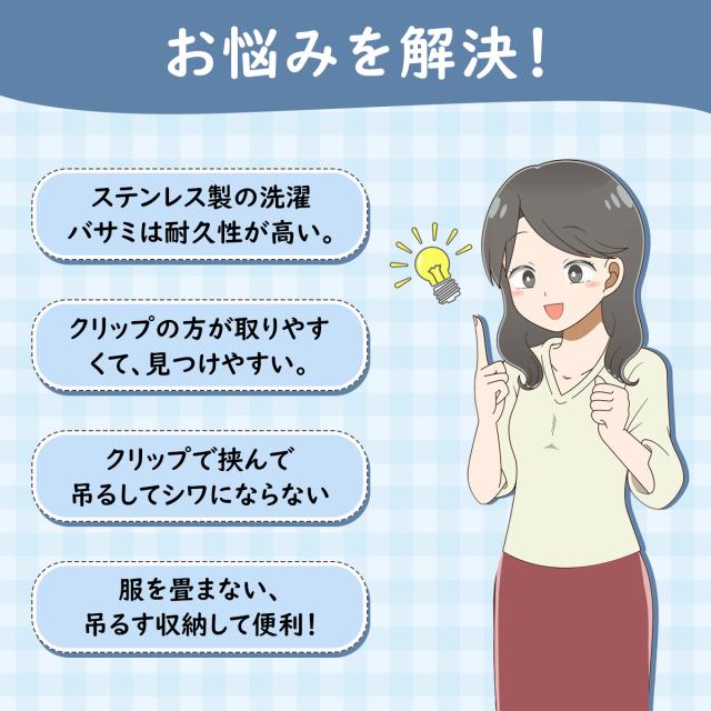 【洗濯物を傷ませない】留めた跡が付くのを避けて洋服と接地する部分に先端はプラスチック浸漬で作られ、丸みのデザインで大切なお洋服や布団などを守ります。