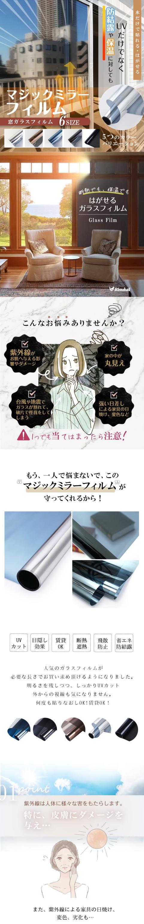 窓ガラスフィルム 目隠しシート 防犯 窓用フィルム マジックミラー 窓断熱シート 窓遮熱シート 遮光シート紫外線カット UVカット日差し対策 暖冷房効率UP ガラス飛散防止 貼ってはがせる 賃貸可 バリエーション多様