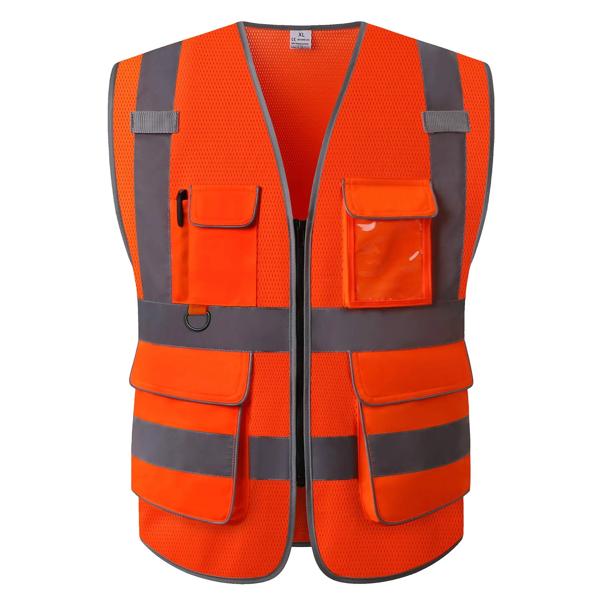 オレンジ色の視認性の高い安全ベスト,マルチポケット,反射メッシュ,通気性のある作業服,ANSIおよびISea規格