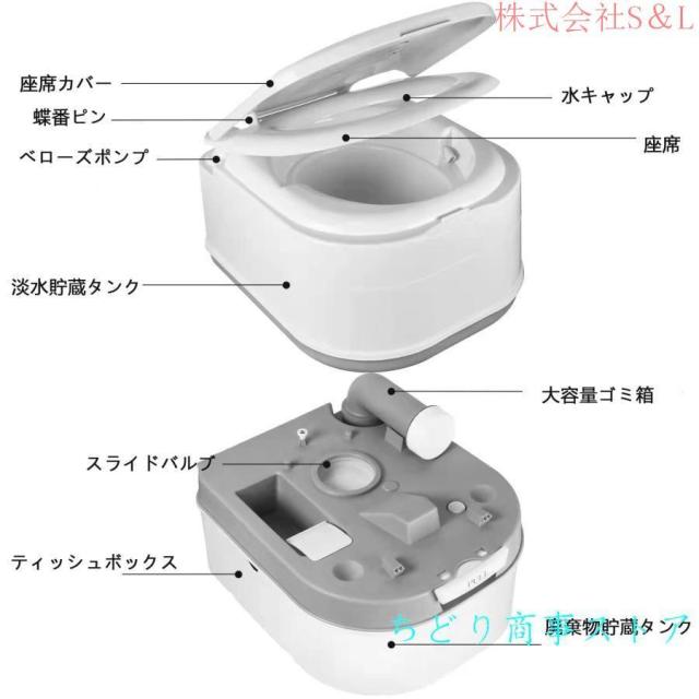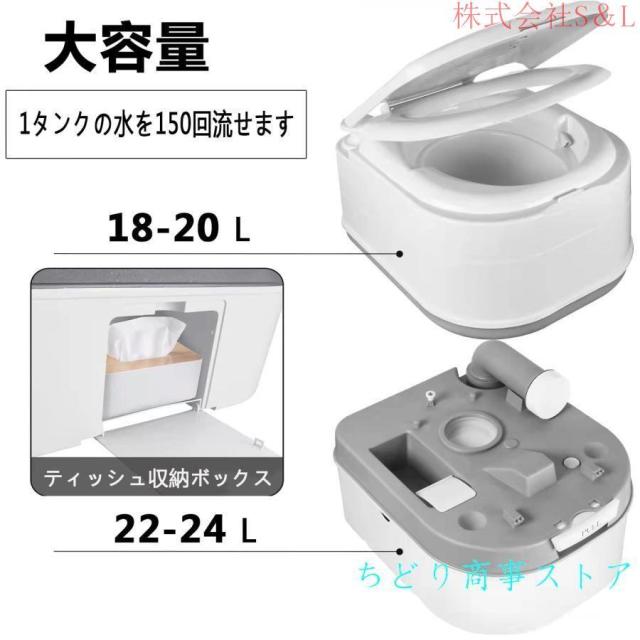ポータブル水洗トイレ 簡易トイレ 20L(水洗タンク) 24L(汚水タンク) 介護用 非常用 災害用 防災 携帯トイレ シングル水出口 ベローズポンプ式 持ち運び簡単 使用