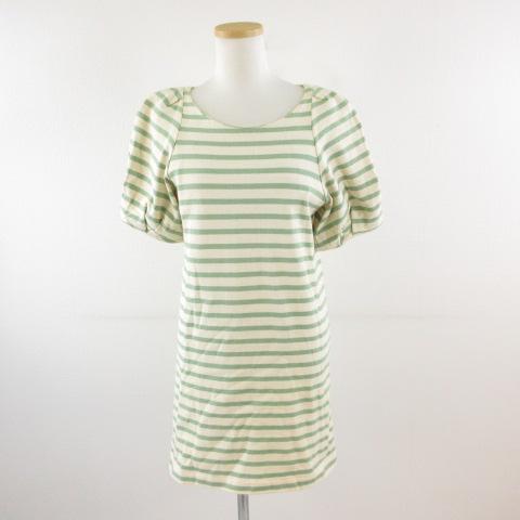 【中古】カオン Kaon ワンピース ミニ 半袖 ボーダー バックリボン 緑 アイボリー F *T263 レディース
