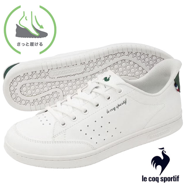 送料無料 スニーカー ローカット レディース SS 春夏 新作 夏新作 秋新作 人気 流行 定番 2025 ルコックスポルティフ le coq sportif SI NEXTEP LU5SSN22UZ 手を使わずに履ける サッと履ける ラ ローラン 履きやすい 軽い 消臭 ホワイト/グリーン 白 靴