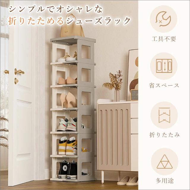 折りたたみ シューズラック 3段 5段 7段 タワー スリム 新生活応援 省スペース 工具不要 シンプル オシャレ 大容量 軽量 靴箱 靴棚 靴 収納 靴ラック コンパクト