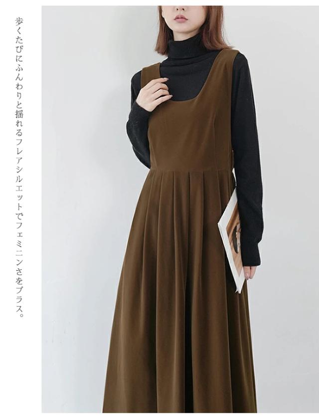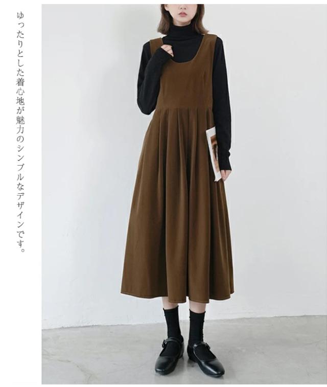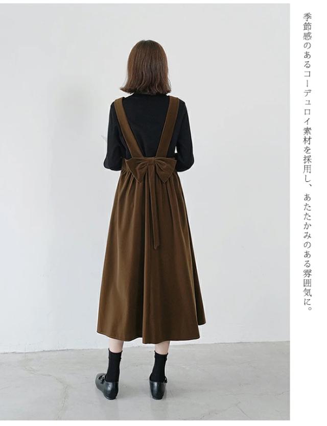 コーデュロイ ジャンパースカート 大きいサイズ ワンピース レディース 秋 冬 無地 コーデュロイ Vネック