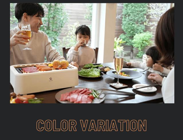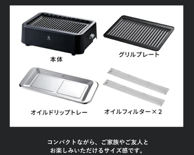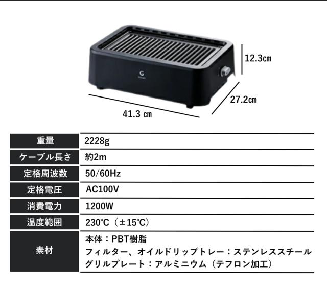 熱源をグリルのサイドに配置し、油を下に落とすので、油と熱源が触れないことで煙が出ない構造。