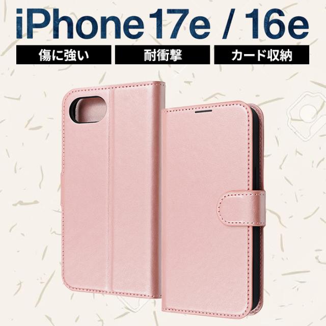 iPhone17e ケース 手帳型 マグネット iPhone16e アイフォン 17e 16e 耐衝撃 レザーケース ピンク シャイニー 手帳 ソフト ハード スマホケース カード収納