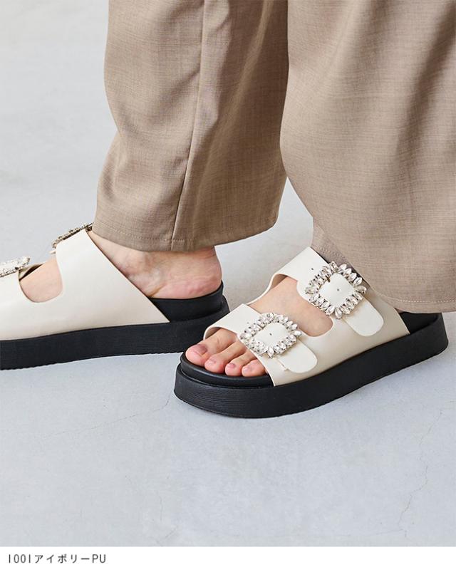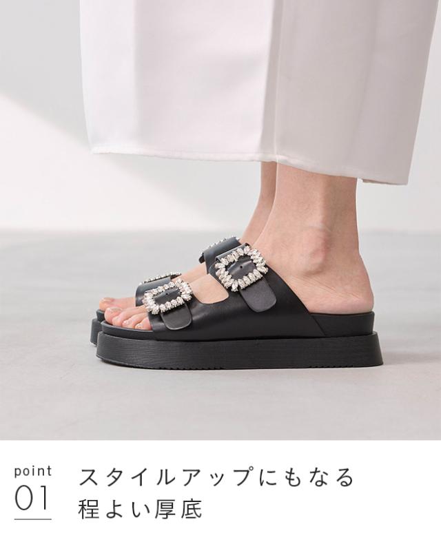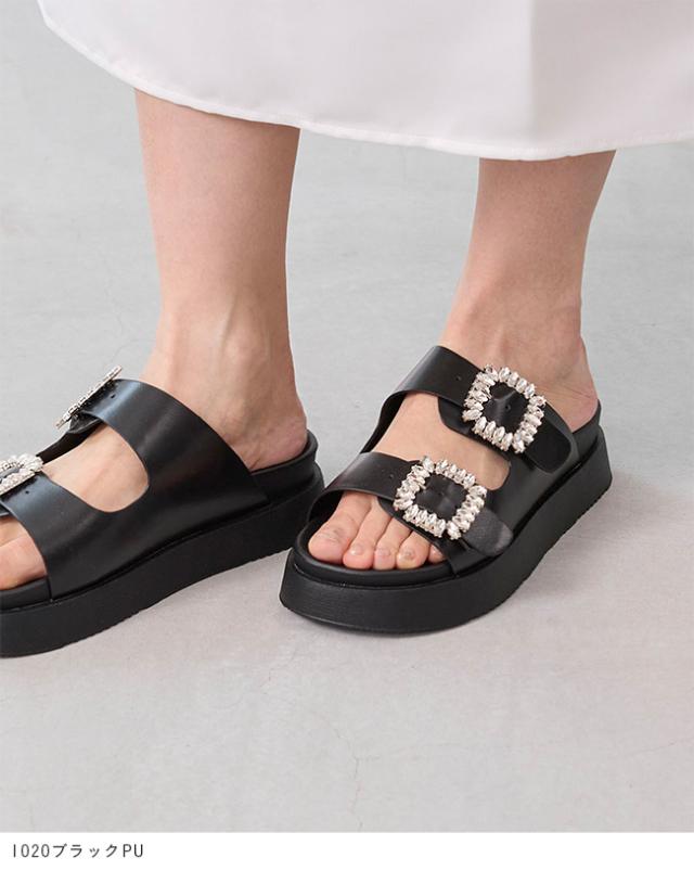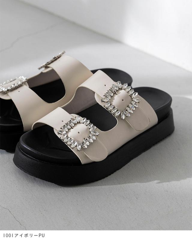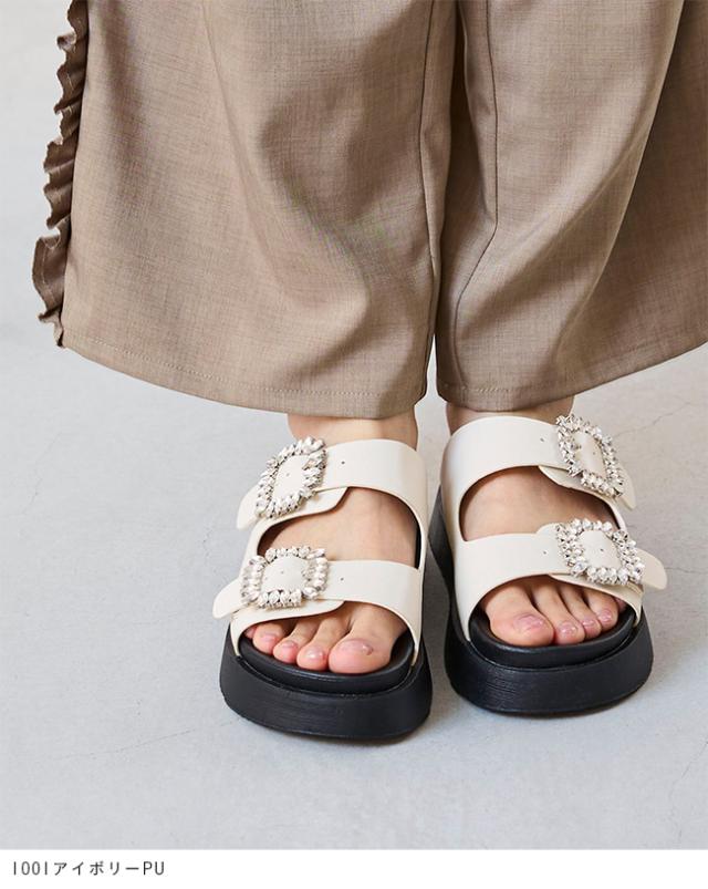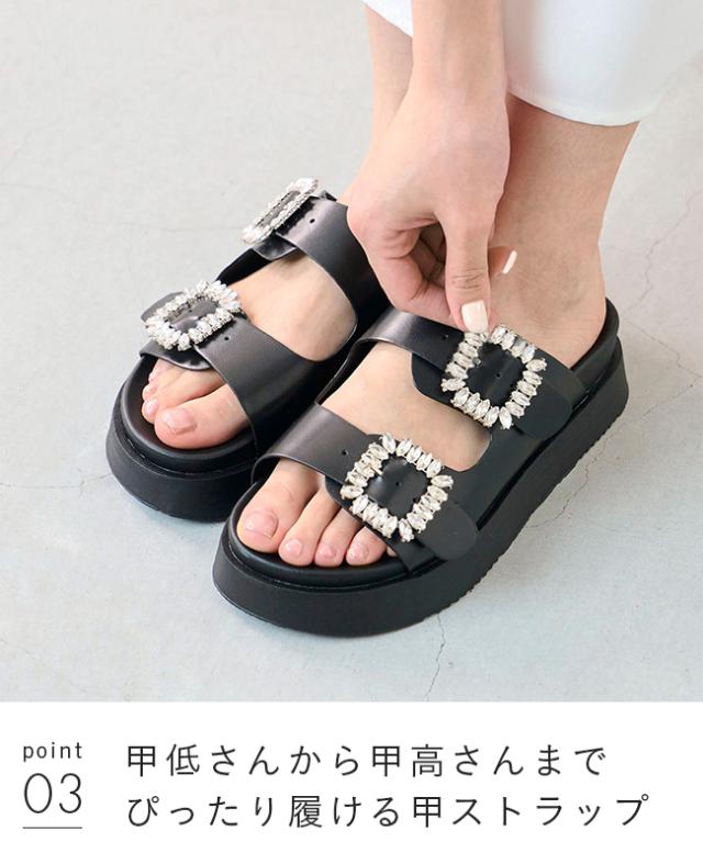 サンダル レディース ミドルヒール 厚底 ボリュームソール 痛くない 歩きやすい 疲れにくい ビジュー きれいめ おしゃれ 白 黒 靴 送料無料