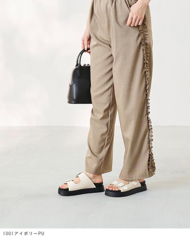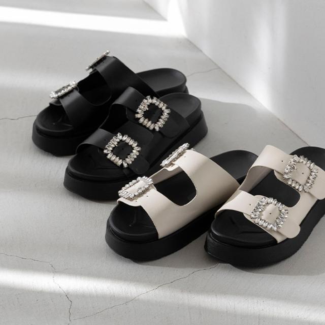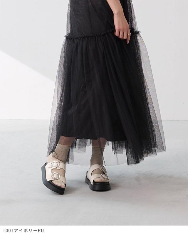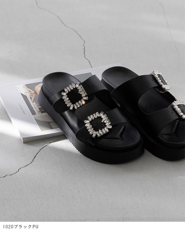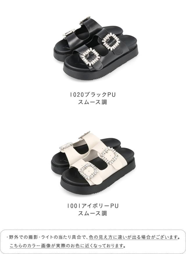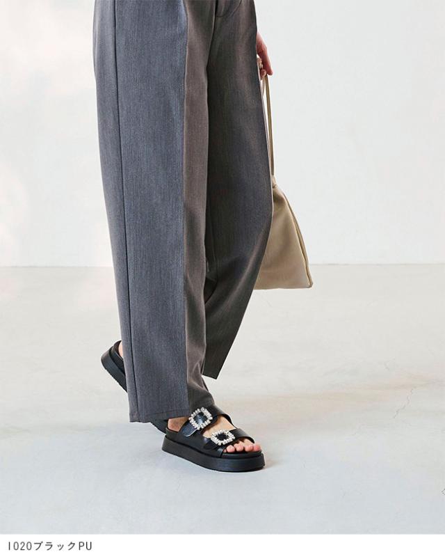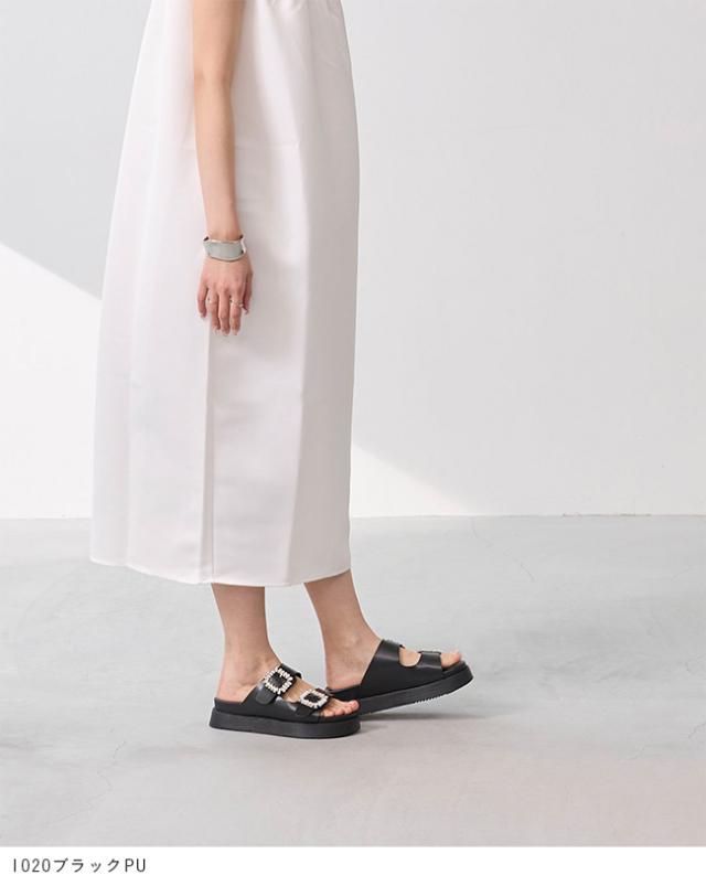 サンダル レディース ミドルヒール 厚底 ボリュームソール 痛くない 歩きやすい 疲れにくい ビジュー きれいめ おしゃれ 白 黒 靴 送料無料