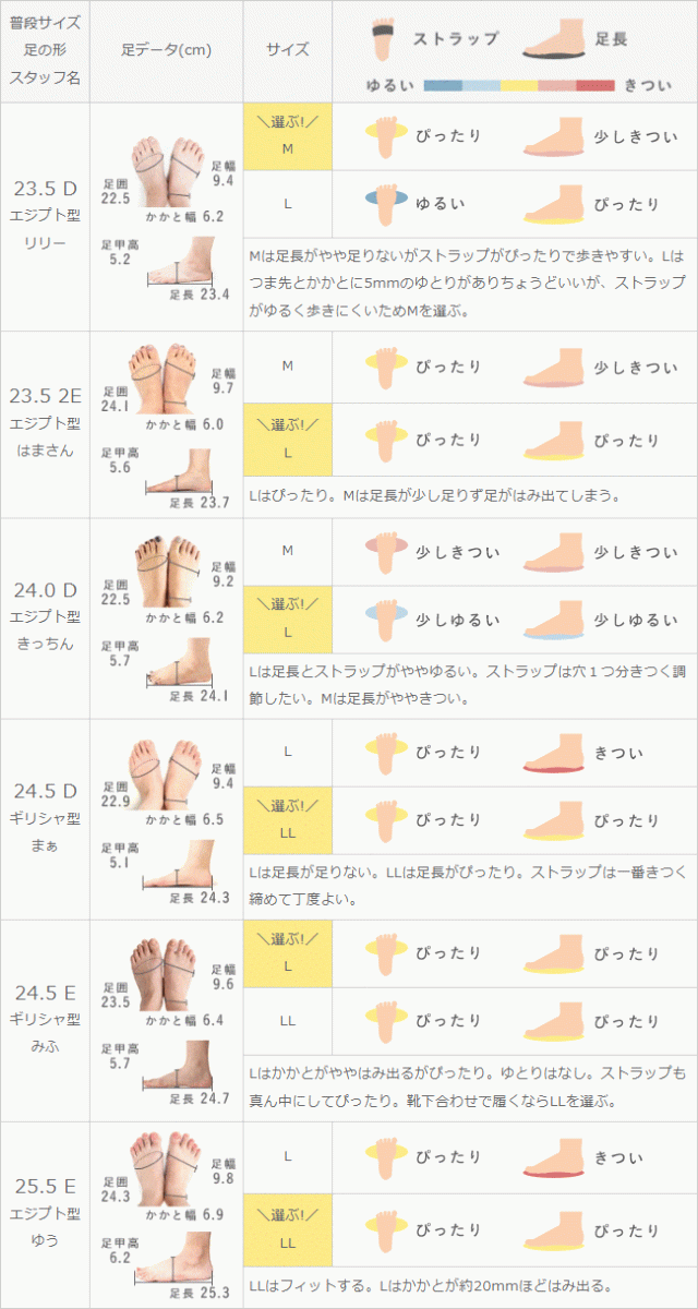 ストラップの長さ調節ができるため、甲の低い方から高い方までぴったり履ける。