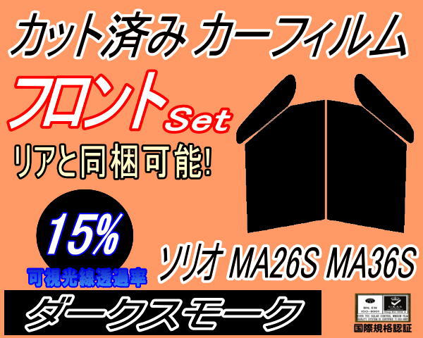 フロント (b) ソリオ MA26S MA36S (15%) カット済みカーフィルム 運転席 助手席 三角窓 左右セット スモークフィルム フロントドア 車種別 スモーク 車種専用 成形 フイルム 日よけ 窓 ガラス ウインドウ 紫外線 UVカット MA26S MA36S スズキ