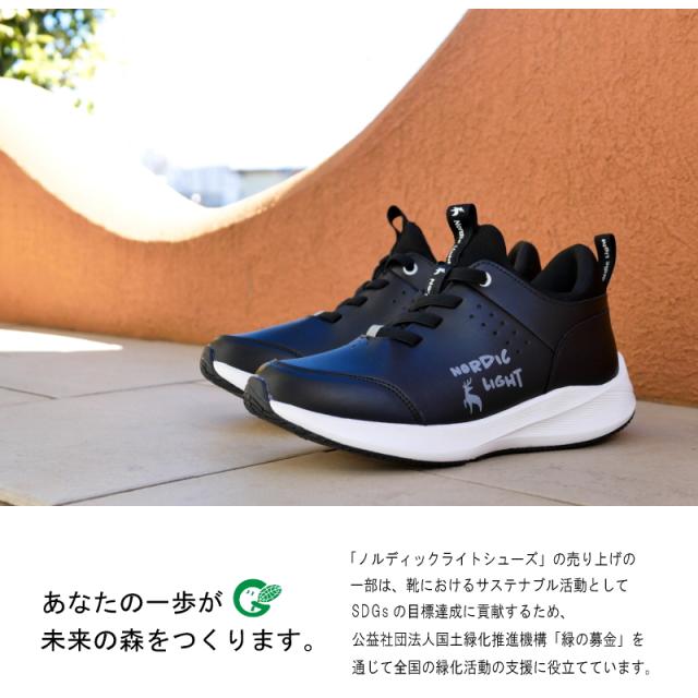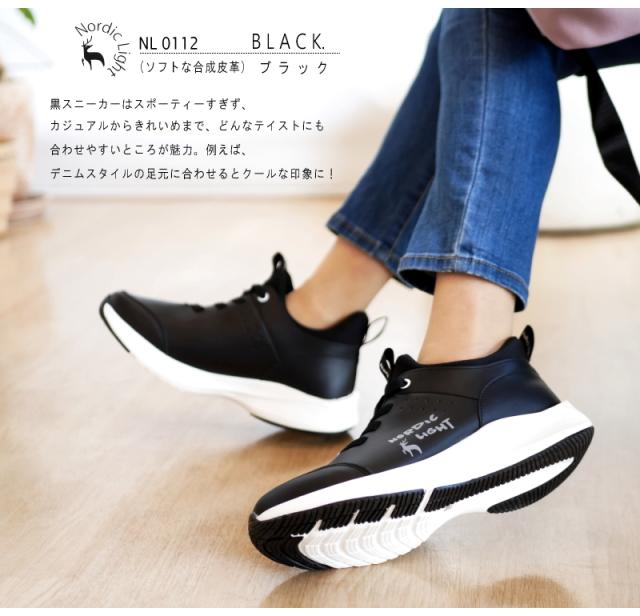 Nordic Light ノルディックライト スニーカー ミドルカット ゴム紐 結ばない靴ひも スリッポン レディース 軽量 クッション フラット シカ 黒 白 疲れにくい 防滑 北欧 ノルウェー 3e