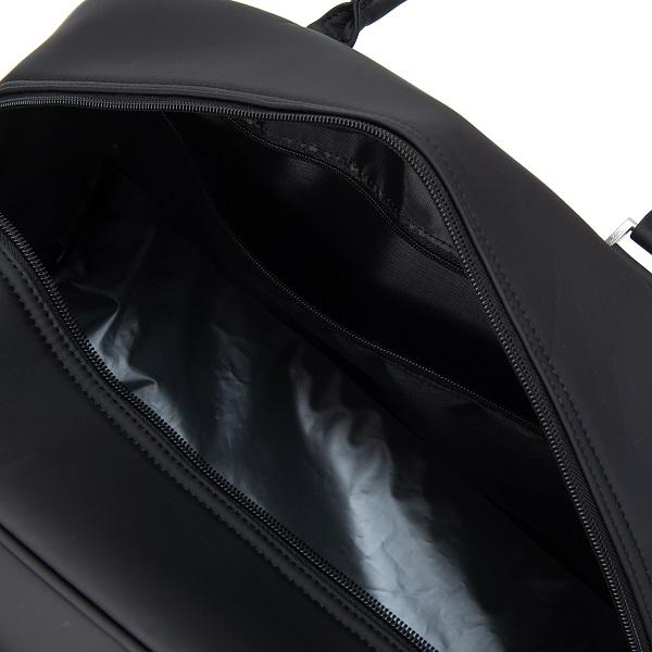正面に2箇所の外装収納と内部に2箇所の収納を備え、背面にはシューズ専用の収納ポケットが装備されており、ショルダーベルトも付いています。