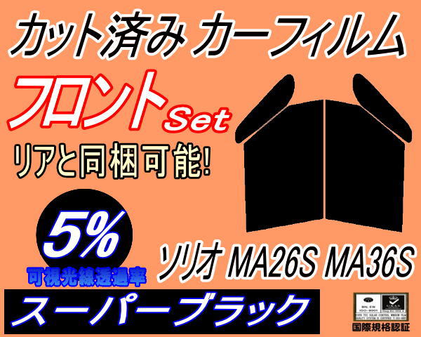 【送料無料】フロント (b) ソリオ MA26S MA36S (5%) カット済みカーフィルム 運転席 助手席 三角窓 左右セット スモークフィルム フロントドア 車種別 スモーク 車種専用 成形 フイルム 日よけ 窓 ガラス ウインドウ 紫外線 UVカット MA26S MA36S スズキ