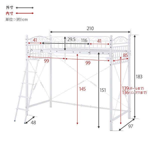 ロフトベッド時:幅97×奥行210×高さ183cm(床板高さ:151cm)