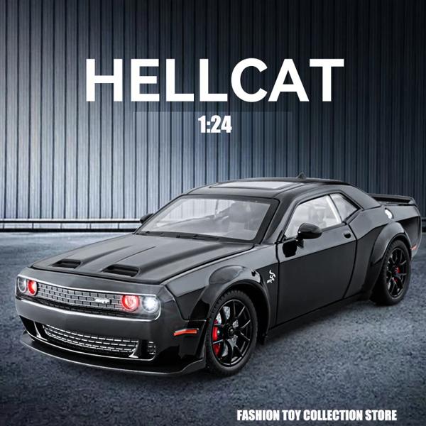 子供のための金属製の車のおもちゃ,ダイキャスト,チャレンジャー,Hellcatモデル,プルバック,音と光,hellc,1:24