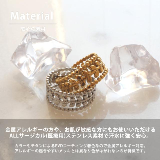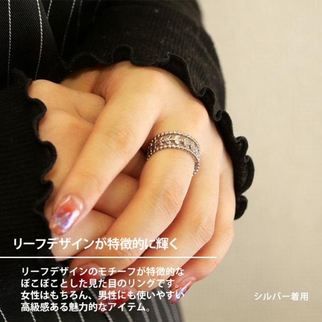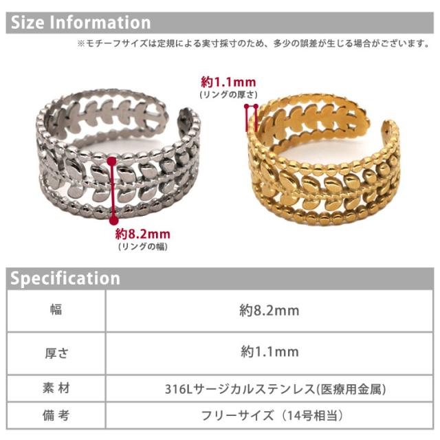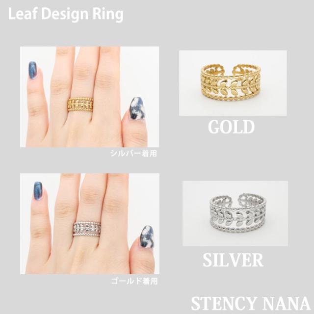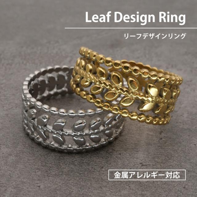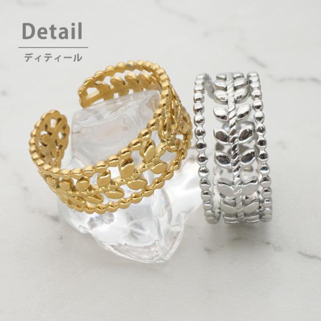 金属アレルギー対応 ステンレスリング リーフデザインリング フリーサイズ 指輪 ゆびわ 316L