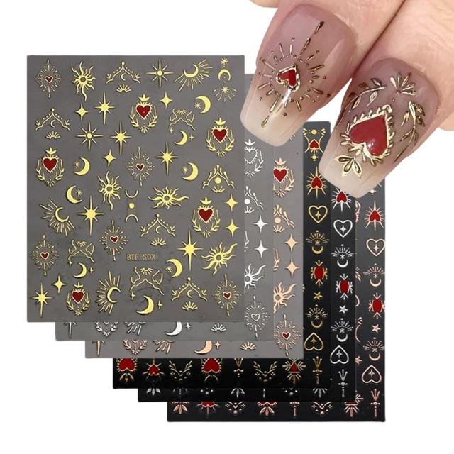 【ネイルシール】ハートや星、月、太陽などをモチーフしたネイルステッカーセットです。色とデザインが異なって、各ステッカーが綺麗で、ネイルをより美しくに演出します。