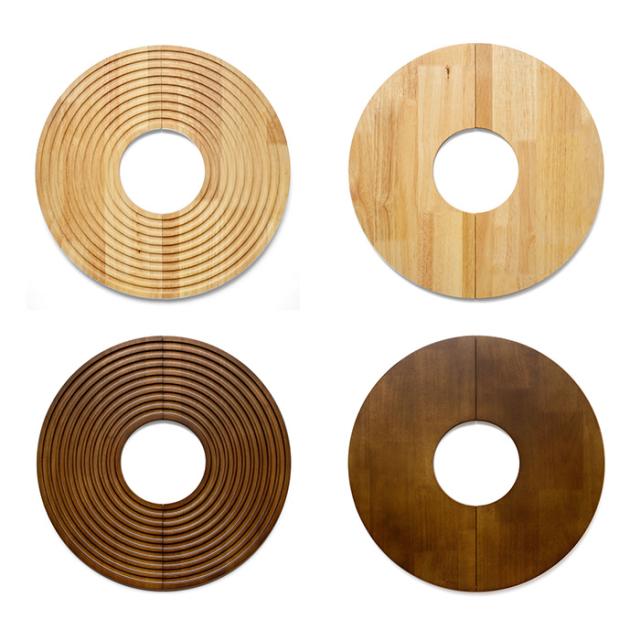 ポットやポットカバーの上に乗せて使えるドーナツ型の木製トレイ