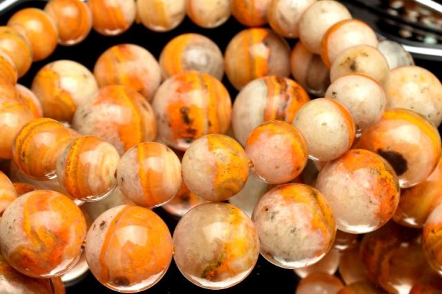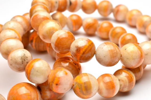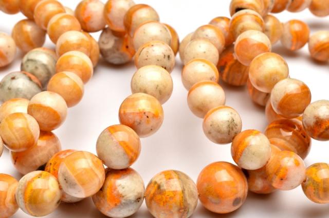 | 特徴・意味 | 高発色のビタミンカラーは見ているだけで元気が貰えそうです! うっすら縞模様やマーブル模様が見え、一粒一粒個性的です。 透過性はありませんが艶感があり、まるではちみつのようです。 ジャスパーは、素朴ですがとても深い美しさを持つ石です。 そして、大地が持つようなどっしりと落ち着いたエネルギーを持つとされ、ジャスパーは持つ人に正直で素直であるように促すといわれています。 人の意思に左右されない強さと、自分自身である為の信念を持つようにサポートにオススメの石といわれています。 |