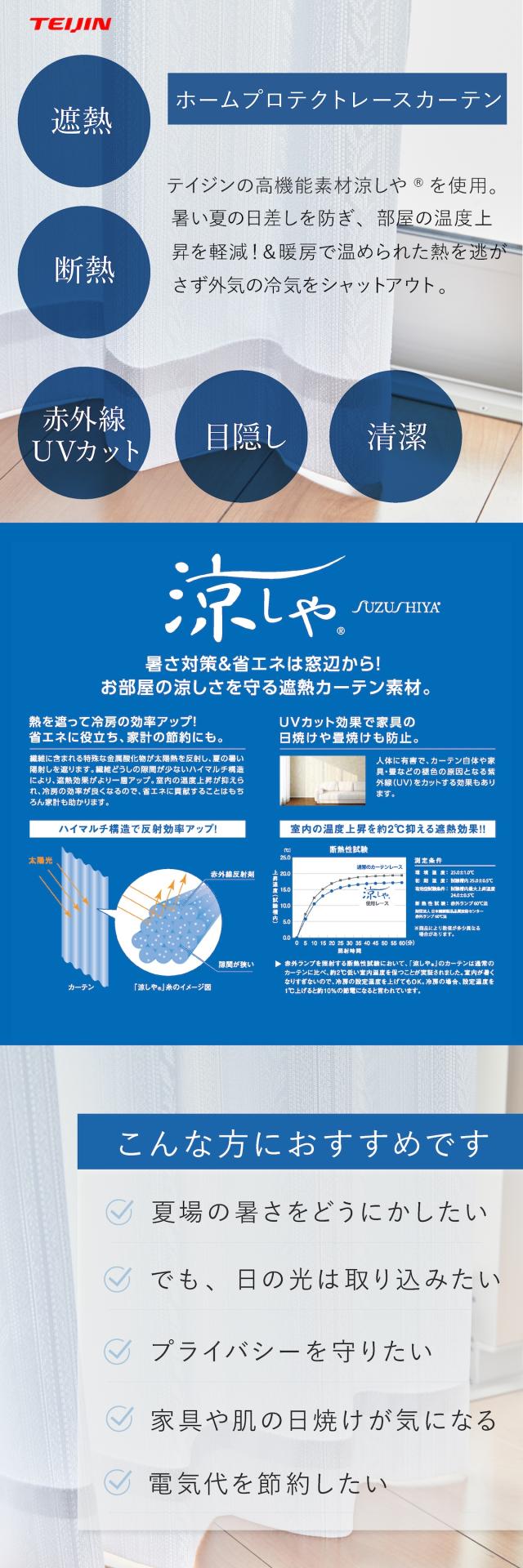 帝人の遮熱糸「涼しや」を採用した高機能レースカーテン。