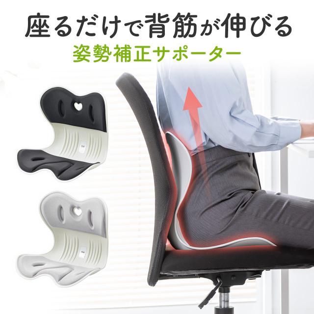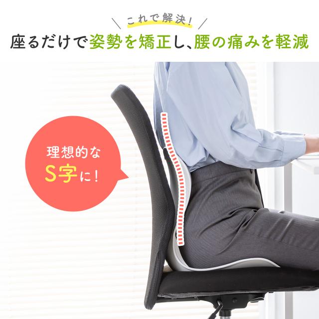 姿勢補正サポートクッション 腰痛対策 後付け 腰サポート S字 クッション ブラック グレー[150-SNCCS6]