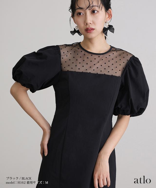 228242078 ドットフロッキー パフスリーブ パーティードレス オケージョン ワンピース 結婚式 かっこいい 大きいサイズ 小柄 ドレス フォーマルドレス フォーマル 小さいサイズ 10代 20代 30代